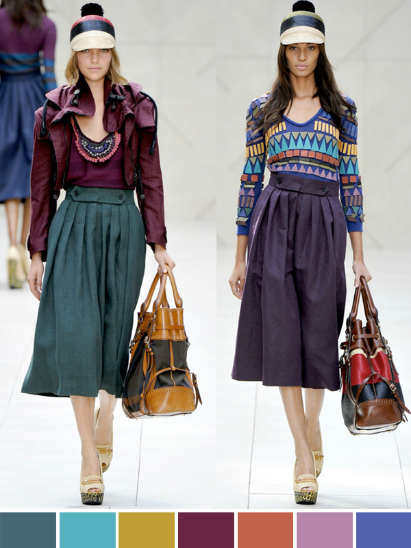 First up, Burberry Prorsum. Their show wasn't packed full of print, but the color was just awe-some! I love the deep, rich, Africa inspired colors and the rich, artisan & handcrafted feel to the collection! It's exciting to see color coming back in a BIG way! Aren't these colors DE-lish?!!